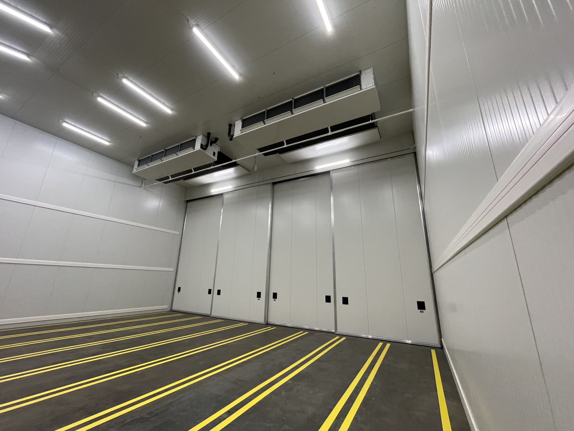 De cellen zijn ingericht met hoogwaardige bewaarwanden en voorzien van moderne, energiezuinige koelers die zorgen voor een stabiel en betrouwbaar klimaat. Deze koelers werken samen met een nieuw geïnstalleerde chiller, die naadloos is geïntegreerd naast de bestaande unit op een speciaal hiervoor ontworpen frame.